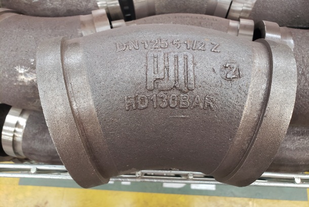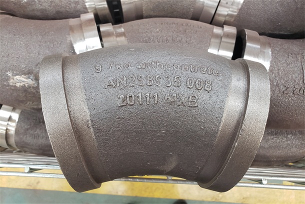 此款產(chǎn)品為德國大象泵車專用臂架彎頭(未噴涂半成品),主要用于泵管之間彎度的連接,彎頭兩端帶有法蘭,彎頭與法蘭的采用自動焊的工藝,有效的防止彎頭與法蘭的斷開,大大延長了彎頭整體的利用率,也為輸送機械省去了經(jīng)常更換的麻煩。